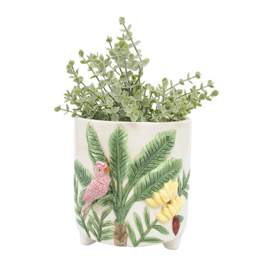 Ceramic Tropical Hummingbird Outdoor Planter Pot 13x16cm Pink