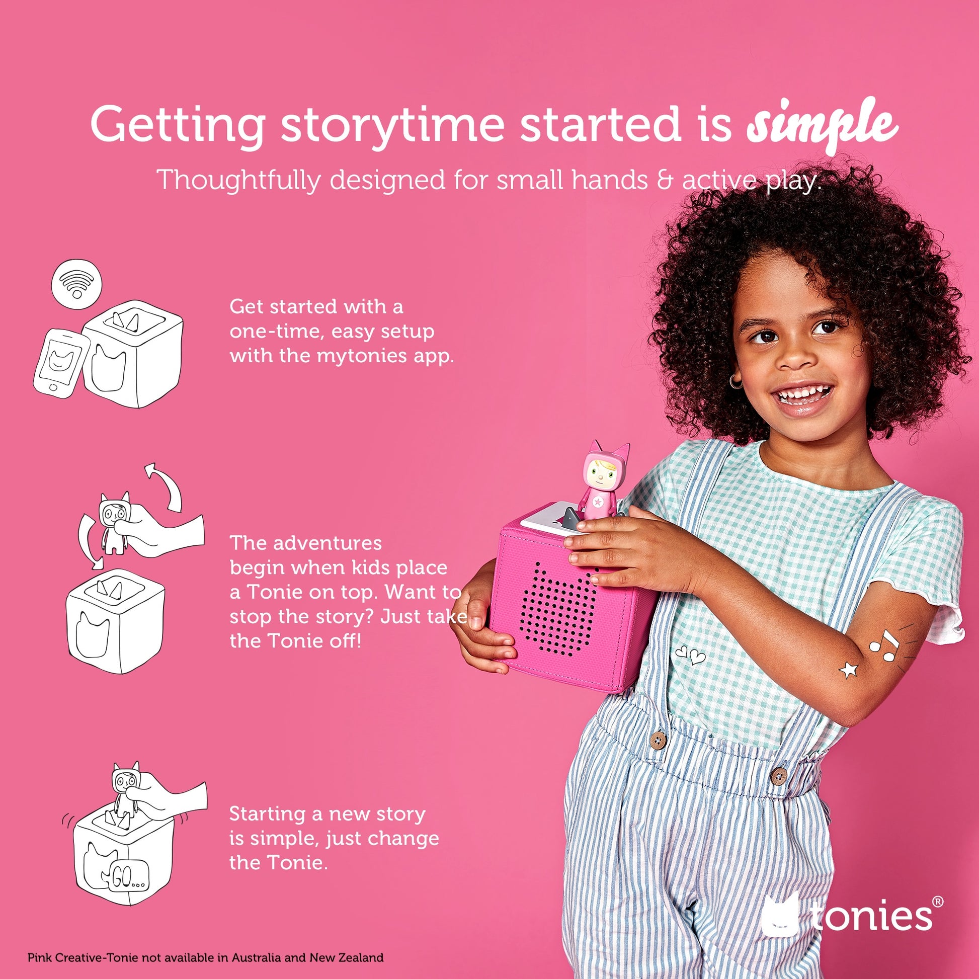 Meet the Toniebox - a new audio system designed for little listeners. Turn it on, pop a Tonie on top and let the audio adventure begin!